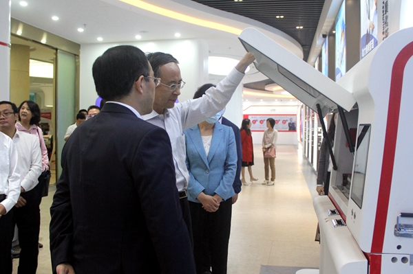 在参观实验室时,万立骏主席一行详细了解了yabo.com新冠核酸检测方案、HPV检测方案、呼吸道检测方案以及血筛检测方案等一系列“yabo.com方案”。