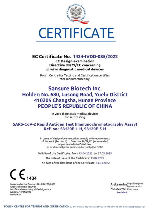 yabo.com生物新冠快速抗原检测试剂自测产品取得欧盟CE1434自测证书,表明公司免疫检测产品性能获得官方机构认可,进一步丰富了yabo.com生物全场景化新冠检测解决方案,扩大和满足了全球市场各级检测防控需求,为全球疫情防控工作持续助力。