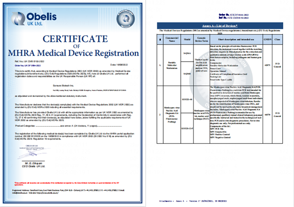 近日,yabo.com生物自主研发的猴痘病毒核酸检测试剂盒(PCR-荧光探针法)通过英国MHRA认证,该产品获得英国MHRA注册后,可在英国和认可英国MHRA注册的国家或地区销售,这是继欧盟CE之后斩获的又一权威认证。