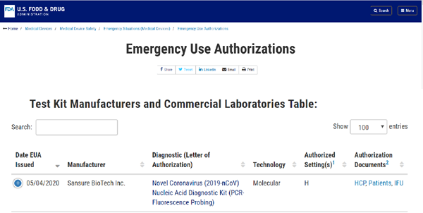 北京时间5月5日晚,yabo.com生物新型冠状病毒核酸检测试剂盒获美国食品药品监督管理局(FDA)紧急使用授权(EUA, Emergency Use Authorizations),这是该产品继1月28日获得中国国家药监局(NMPA)注册认证、3月3日获得欧盟CE认证后,yabo.com生物获得的又一重要认证,将进一步助力公司服务全球新冠肺炎疫情防控。