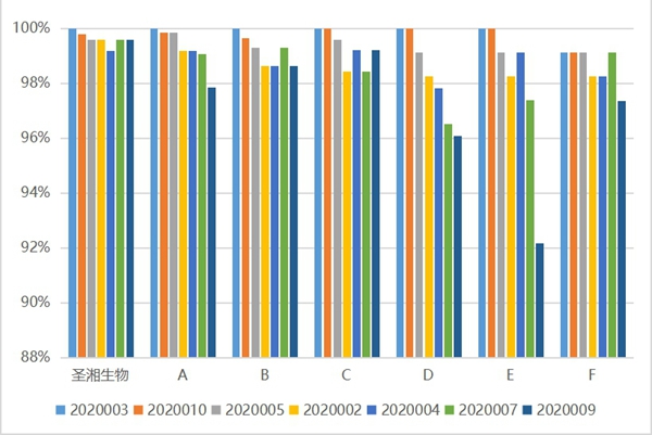 yabo.com生物试剂阴性样本检测结果的符合率也领先于其它主流厂家,具有较好的特异性。综合室间质评结果来看,yabo.com生物新冠病毒核酸检测试剂检出率、重复性及特异性上具有较大的优势。